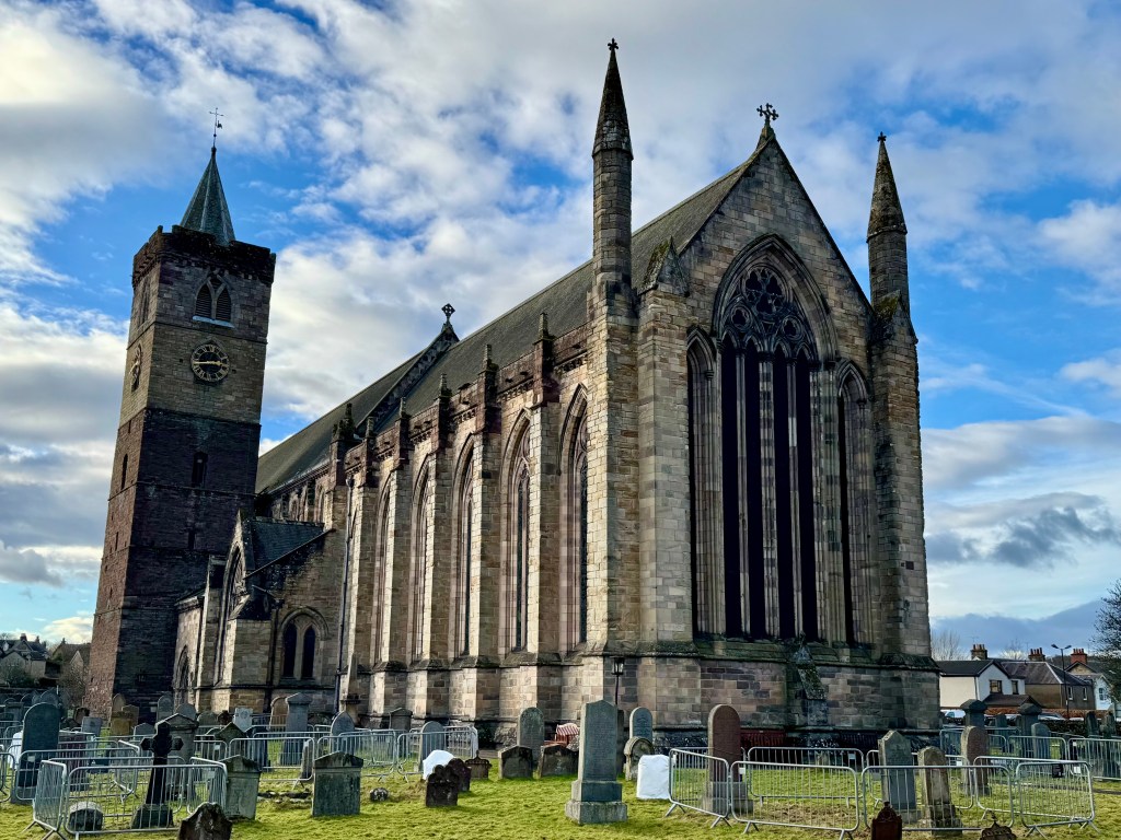 We visited the cathedral at the end of January 2025 on a bright but cold afternoon. We were welcomed by a volunteer from Historic Environment Scotland who gave a brief summary of the cathedral’s restoration and what we would see.